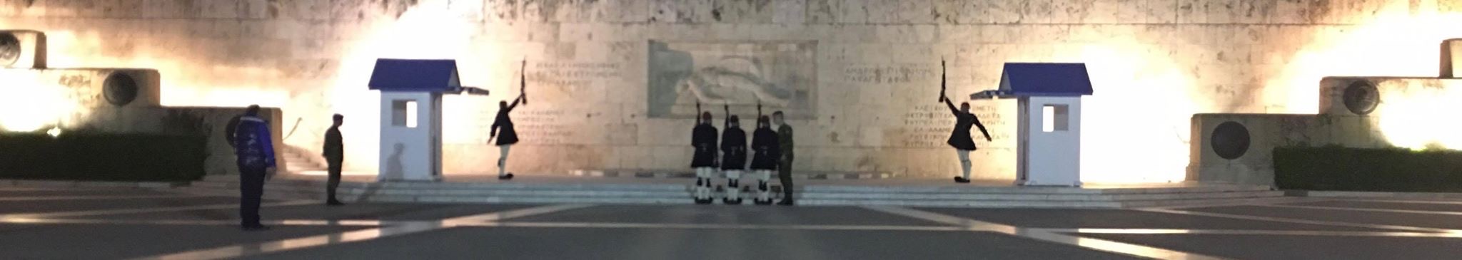 Ξεκινάνε ταυτόχρονα επτά ευζωνικά βήματα εμπρός (ο Δείκτης μέχρι την κολώνα 3, ο Ζαππείου μέχρι την κολώνα 2), προσοχή, μεταβολή, παρά πόδα.